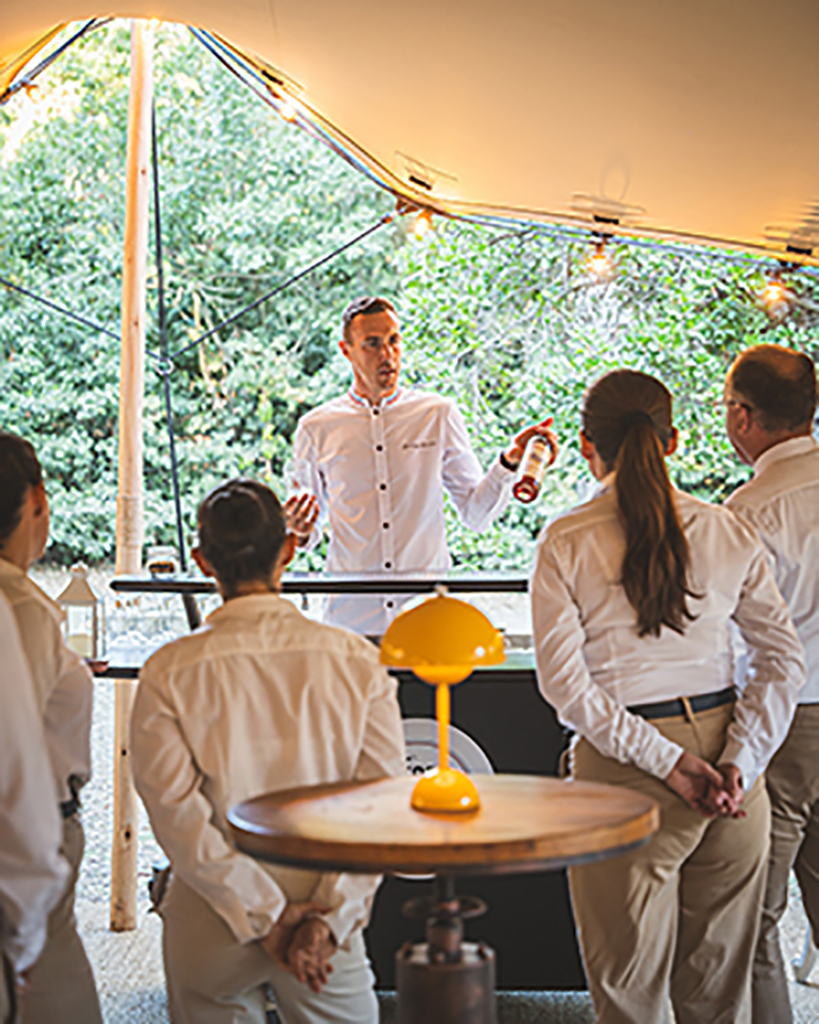 Ajoutez-y un barman mixologue élégant au savoir-faire incomparable et vous obtenez la recette parfaite pour une prestation haut de gamme et des invités comblés.